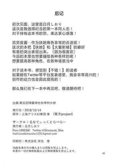 (Shuuki Reitaisai 5) [Lunatic Traveler (Shiratsuki Shiori)] Amaetagari no Clopie-chan! (Touhou Project)